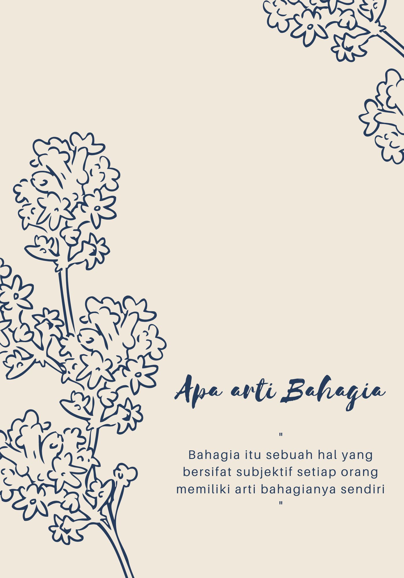 “Arti bahagia adalah ketika aku tidak merasa sedih, dan aku bisa bersyukur setiap harinya”, jawabku sekenanya.